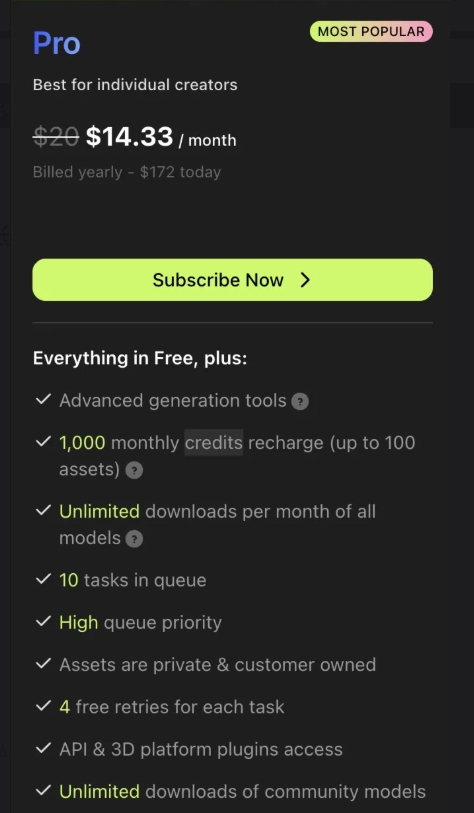 Meshy AI — это ведущая ИИ-платформа для создания 3D-ассетов. Мы предоставляем готовый ПРИВАТНЫЙ аккаунт с подпиской Pro и 1100 кредитов.
