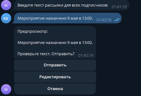 - Рассылка всем подписчикам