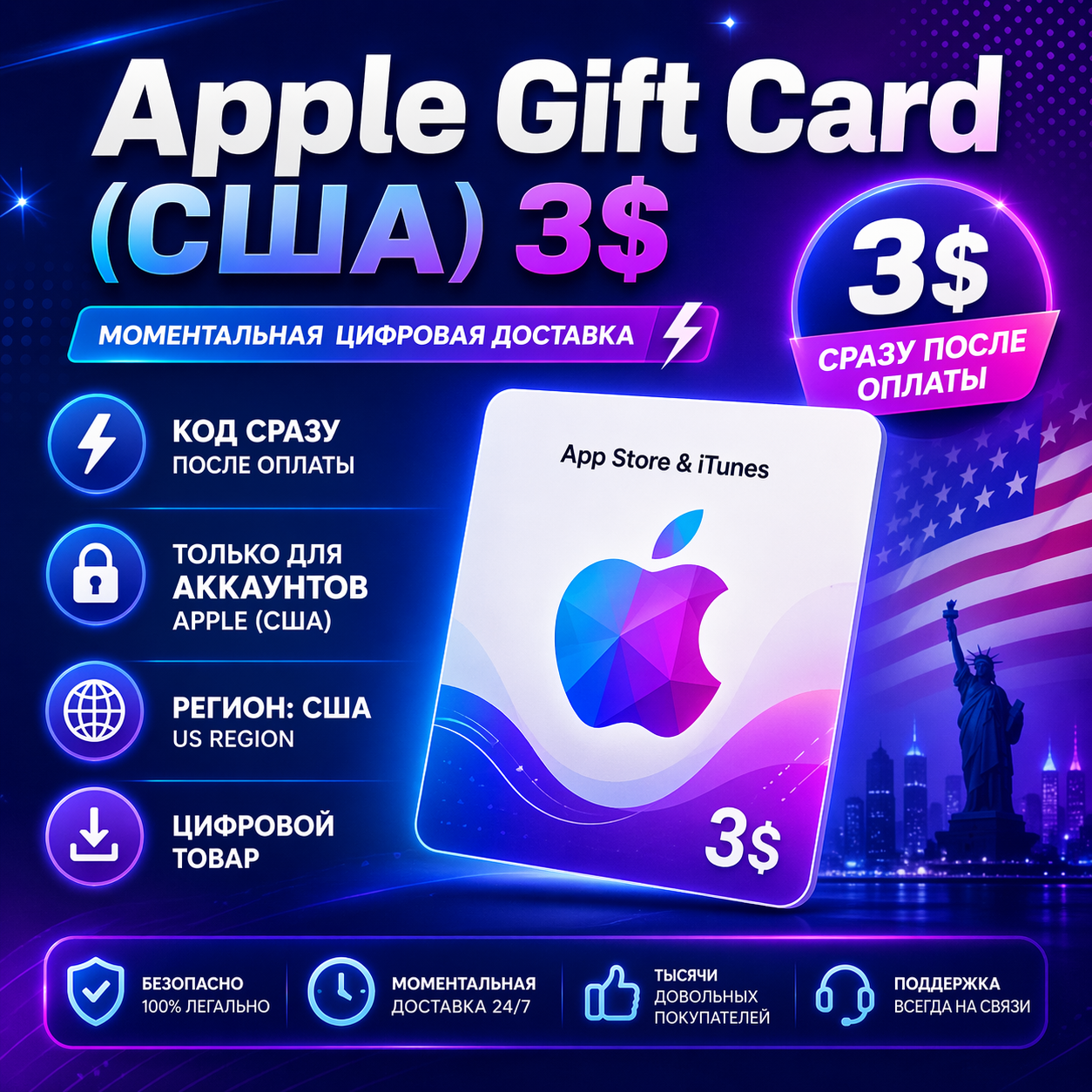 ✅ Номинал Apple Gift Card — $3