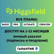 Планы Higgsfield AI Basic / Pro / Ultimate / Creator — доступ на 1–12 месяцев