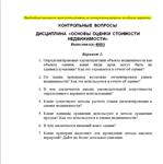 Контрольные вопросы вариант № 3 Оценка недвижимости