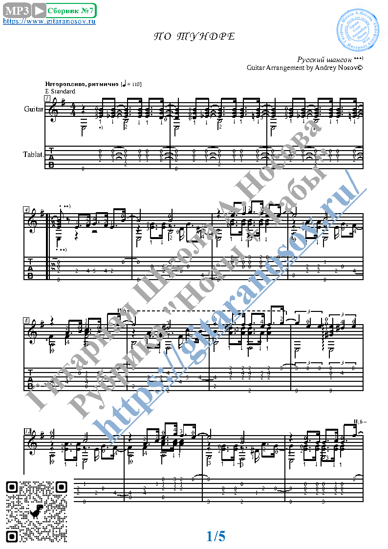 Here is the composition "On the tundra (G.M.Shurmak)" for a 6-string guitar SOLO. The recording corresponds with the sheet music and comes with detailed fingering and a separate version with tablature.