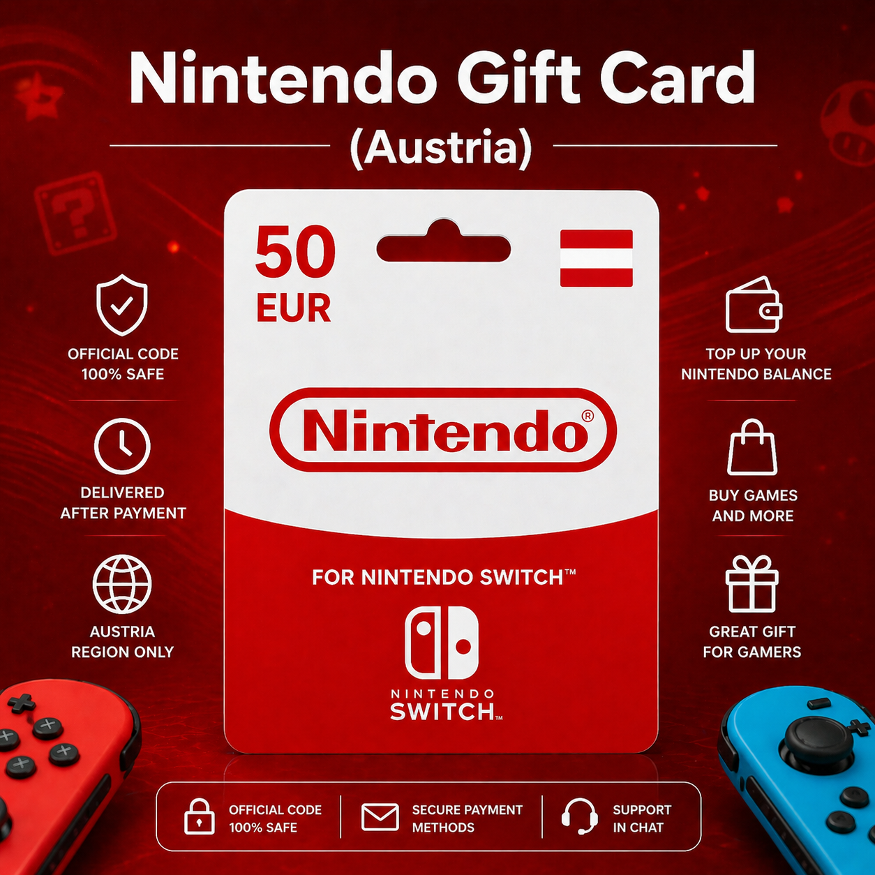 Подарочную карту Nintendo (Австрия) номиналом от 15 до 50 EUR — выберите нужную сумму при покупке