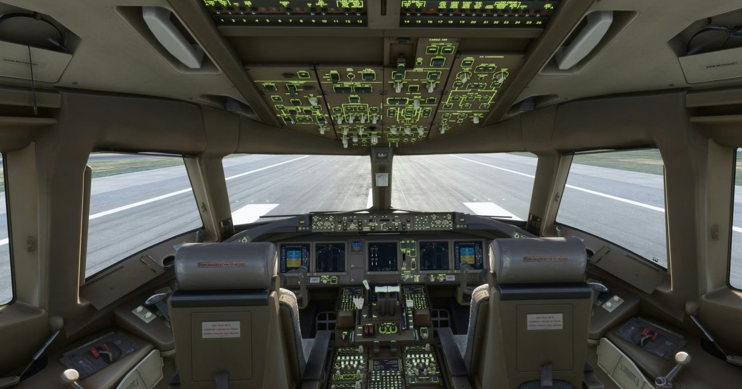 Детализированная приборная панель, качественные текстуры, плавные анимации и правдоподобная атмосферность кабины — ощущение настоящего лайнера.