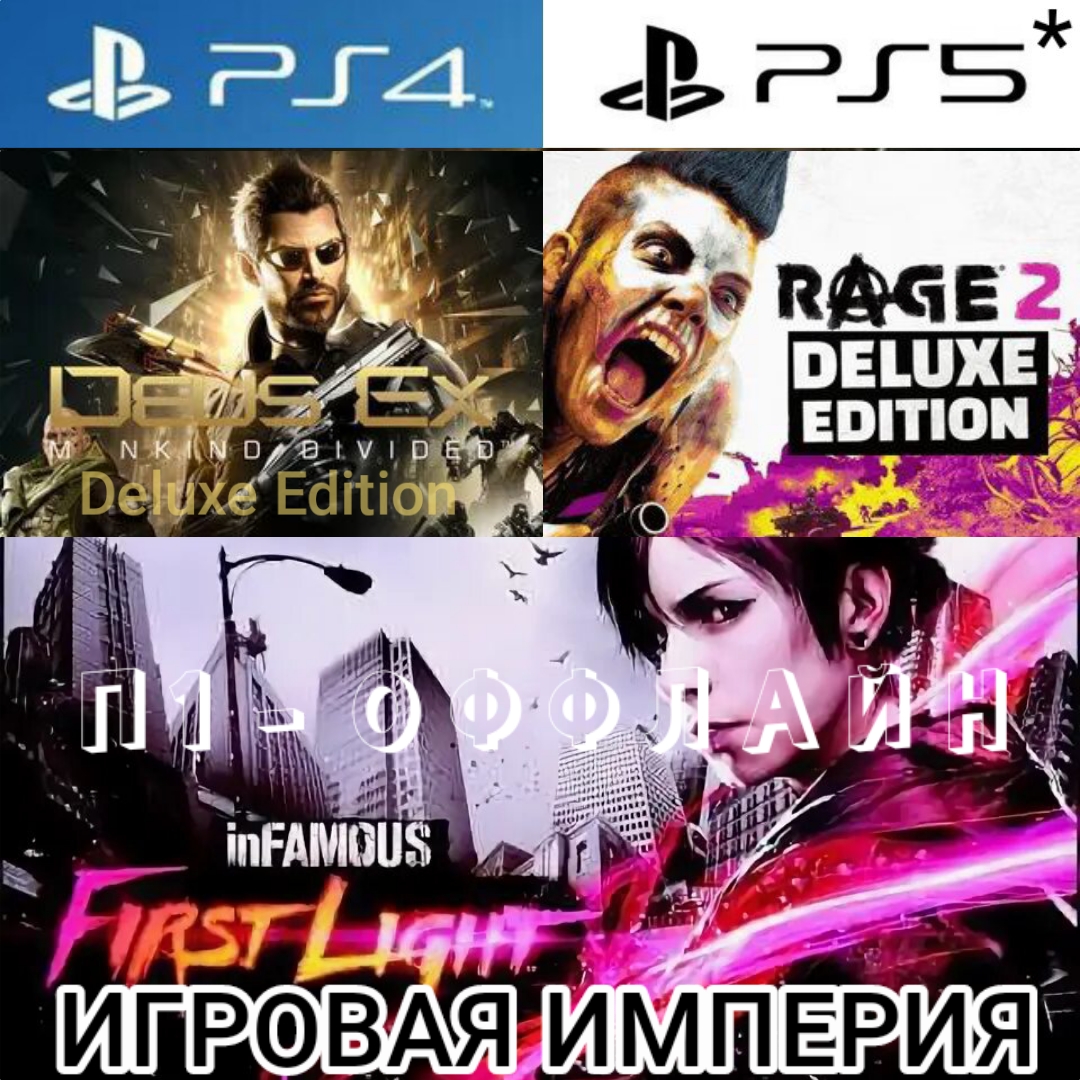2.Доступные платформа: PS4|5*- Deus Ex: Mankind Divided + DLC Системный Сбой + DLC Криминальное прошлое + Rage 2 + DLC Восхождение призраков + Infamous First Light.