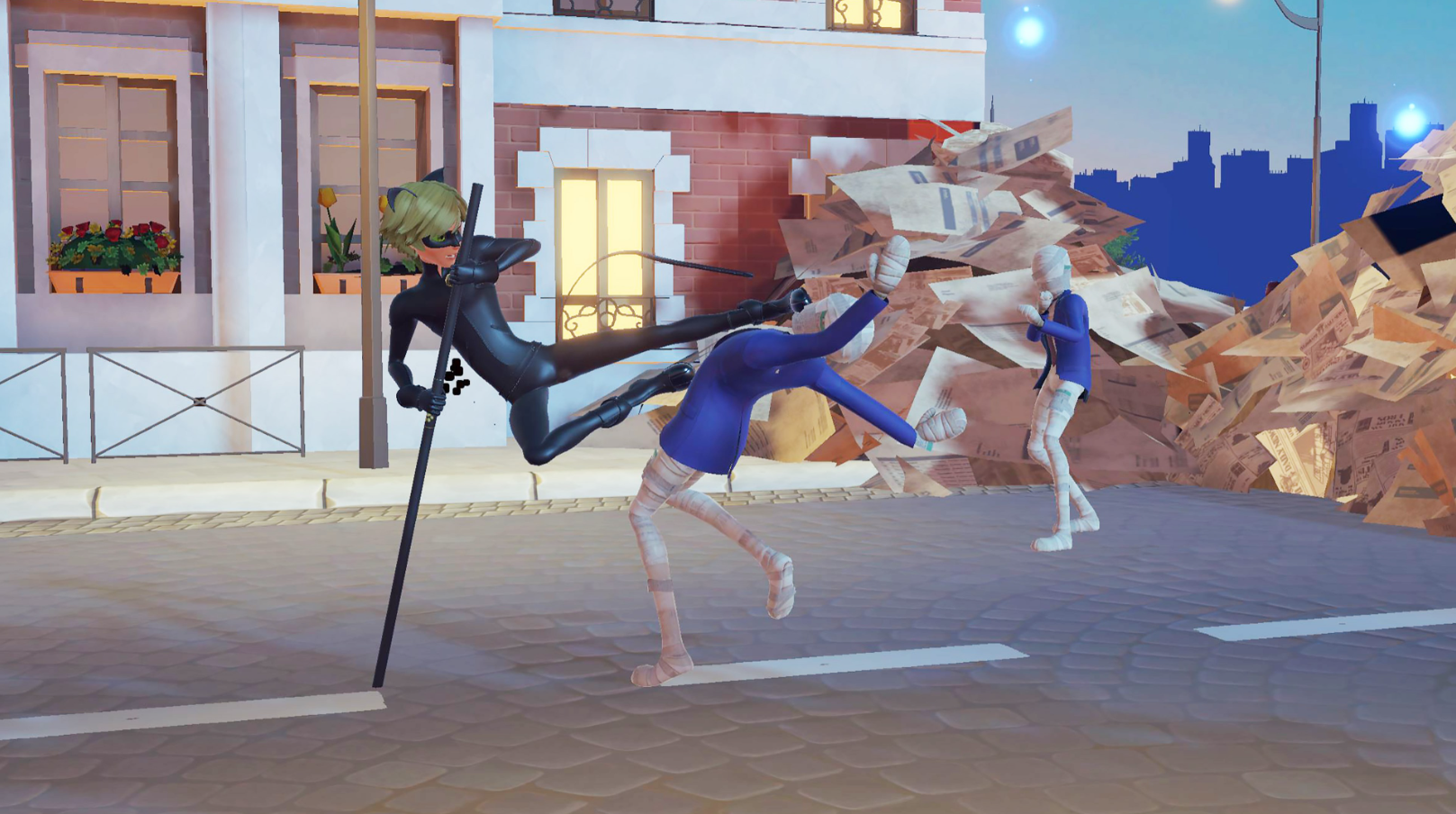 • Супер-гаджеты! Используйте быстро летающее йо-йо Ледибаг и волшебный универсальный посох Кота Нуара, чтобы раскачиваться или прыгать в бой! Улучшайте гаджеты, чтобы разблокировать новые мощные приемы!