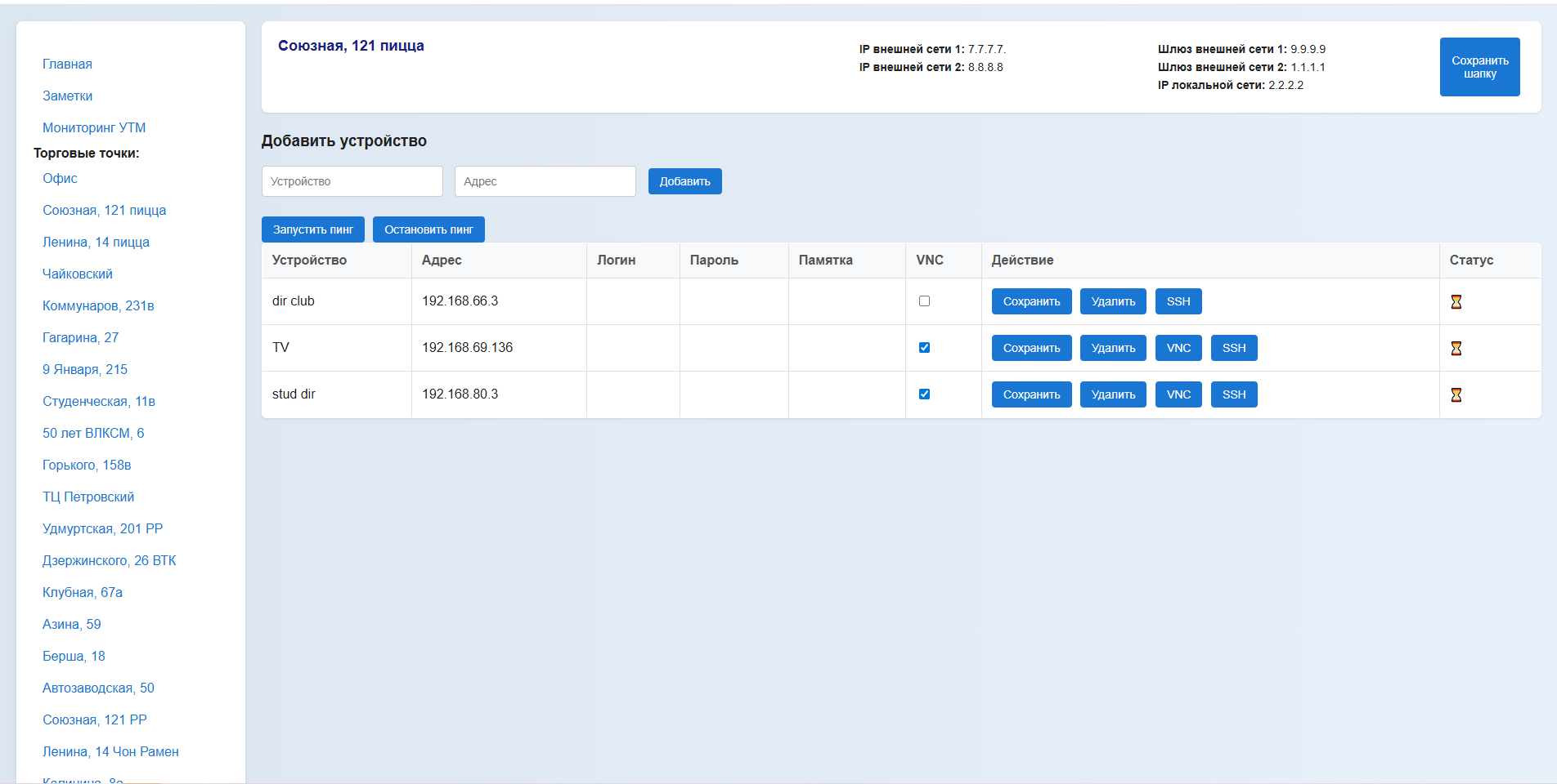 Привязка IP-адресов и сетевого оборудования к каждой ТТ