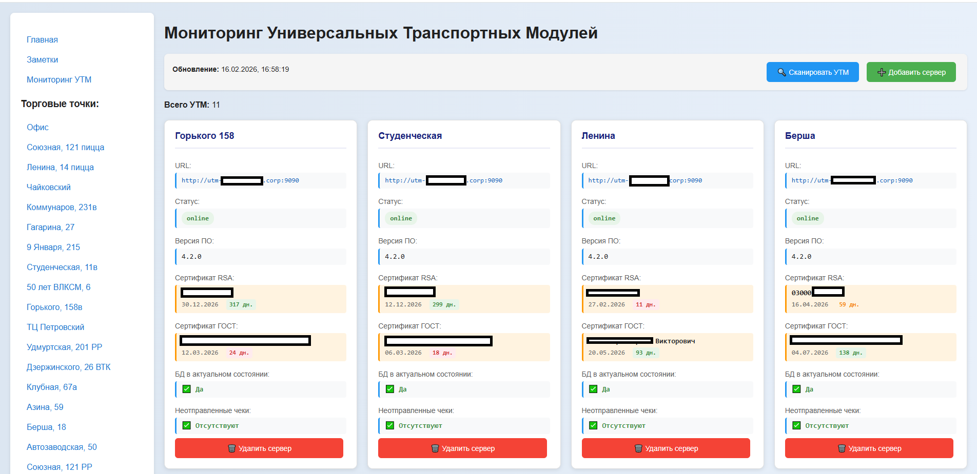 ✅ Мониторинг УТМ (Универсальных Транспортных Модулей)