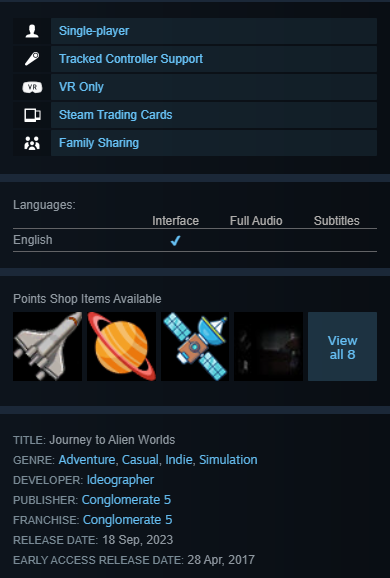 https://store.steampowered.com/app/628960/Journey_to_Alien_Worlds/➕ Есть коллекционные карточки Steam