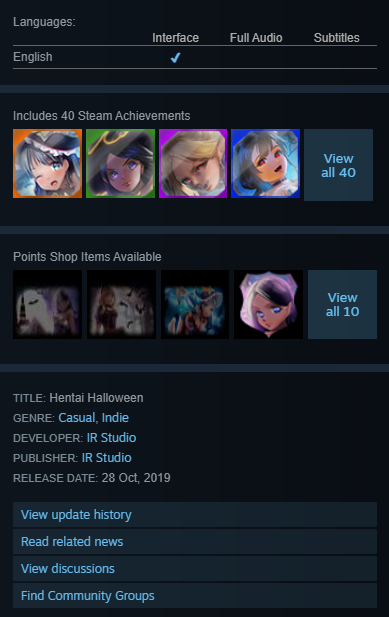 https://store.steampowered.com/app/1171440/Hentai_Halloween/➕ Есть коллекционные карточки Steam