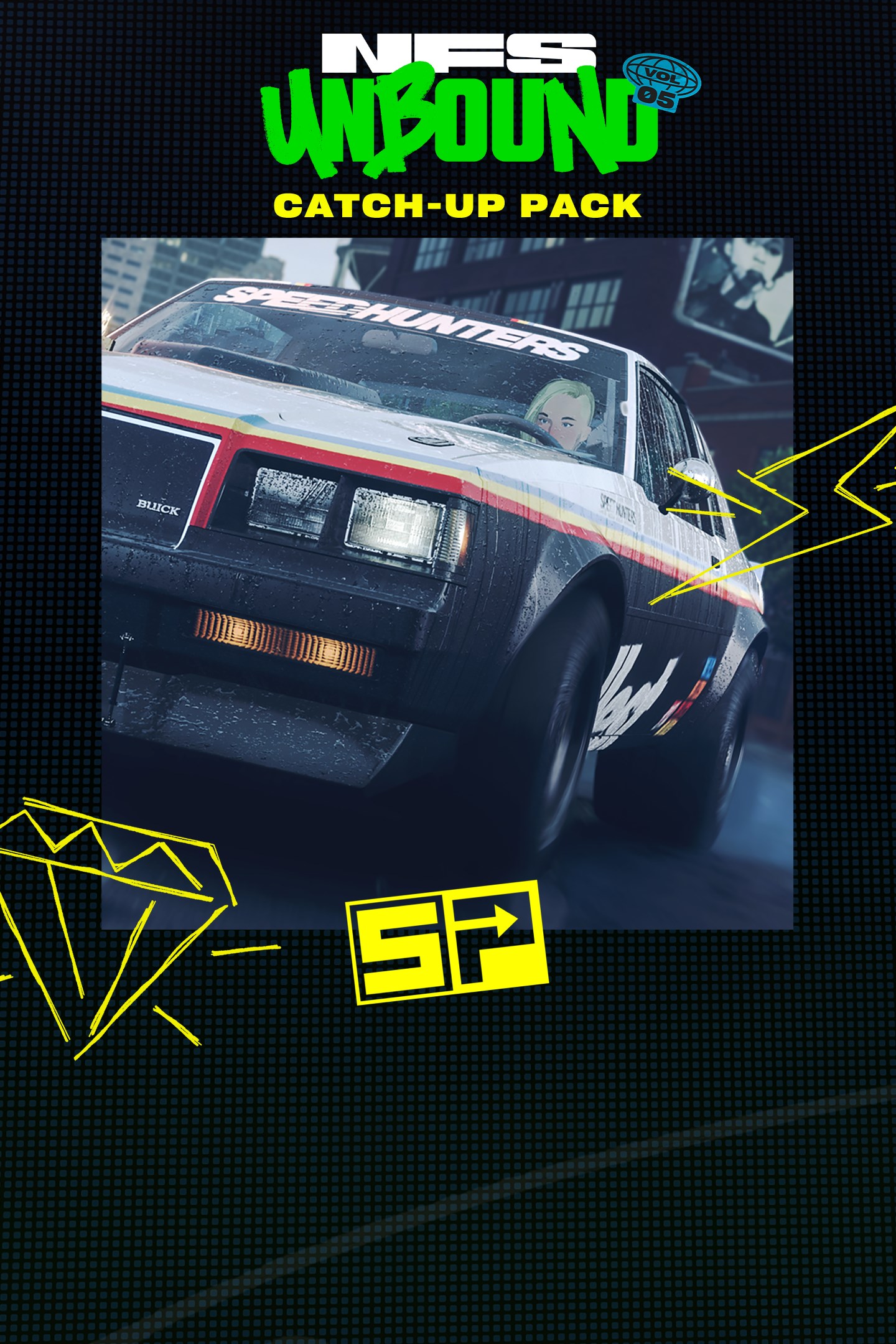 Не получили предметы и машины из Speed Pass Volume 5? Это можно поправить! В наборе прокачки Need for Speed™ Unbound Volume 5 представлены легендарный кастом Volkswagen Beetle (1963) и все 74 предмета украшения и персонализации из Speed Pass Volume 5, в т.ч. легендарный кастом Buick Grand National GNX (1987).