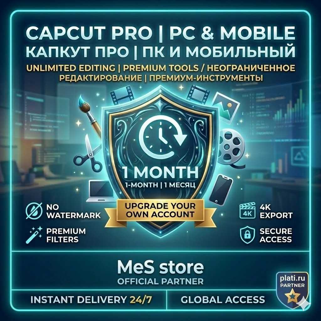 С этой покупкой вы получите ПРЕМИУМ-ПОДПИСКУ на 1 МЕСЯЦ, активированную НА ВАШ СОБСТВЕННЫЙ личный аккаунт CapCut. Подписка работает безупречно как на ПК, так и на мобильных устройствах.