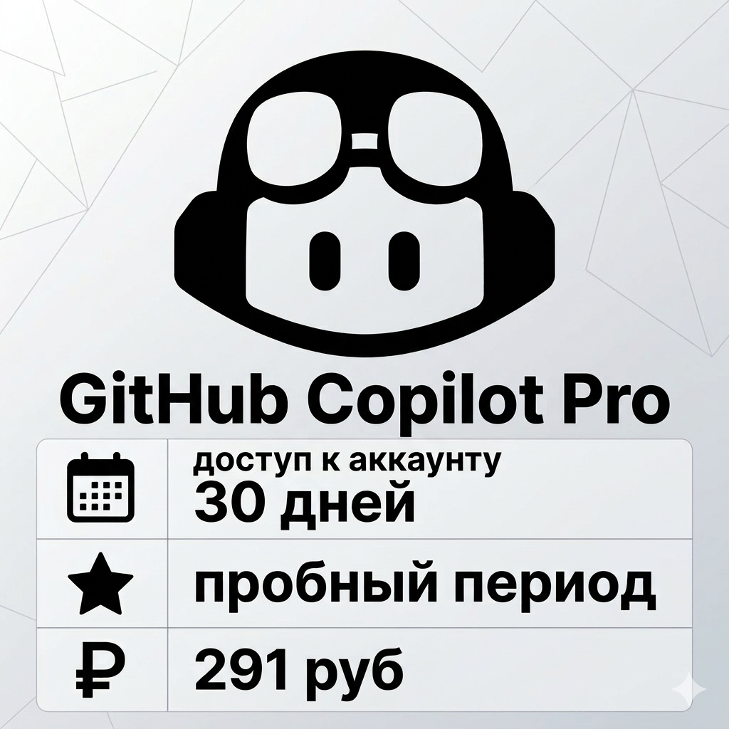 🧪 Важно! Это доступ к аккаунту с активированной БЕСПЛАТНОЙ ПРОБНОЙ ВЕРСИЕЙ GitHub Copilot Pro сроком на 30 дней.
