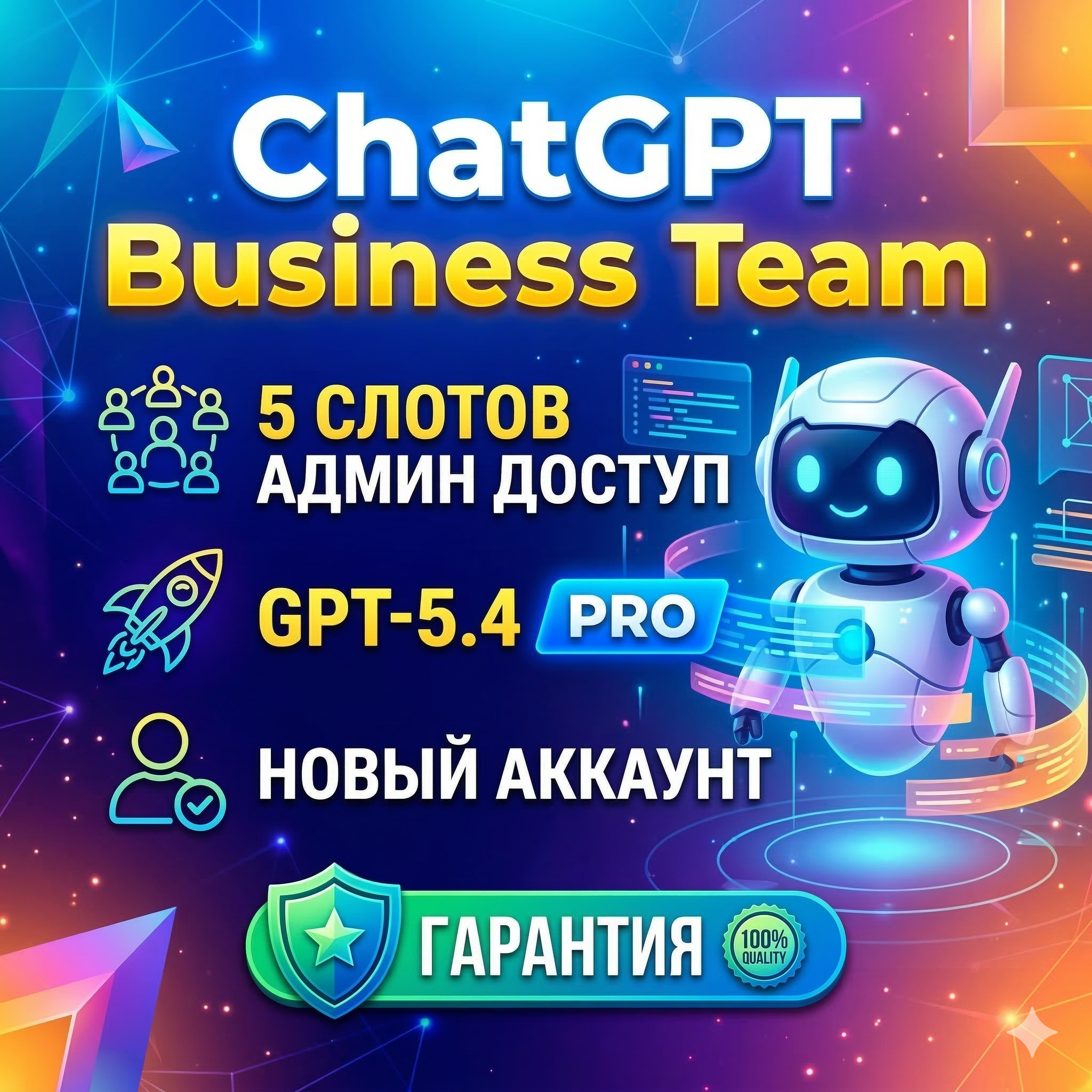 ✅ChatGPT Business (Team) 1 слот GPT-5.4 / PRO | Приглашение | Гарантия) — если вам не нужны 5 мест, а только доступ в бизнес-пространство.