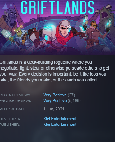 Griftlands — это карточная игра в жанре roguelike, где вам предстоит сражаться и вести переговоры в разрушенном научно-фантастическом мире. Каждое решение важно, будь то выбор работы, друзья или карты. Смерть настигает быстро, но каждая игра предлагает новые ситуации и стратегии для исследования.