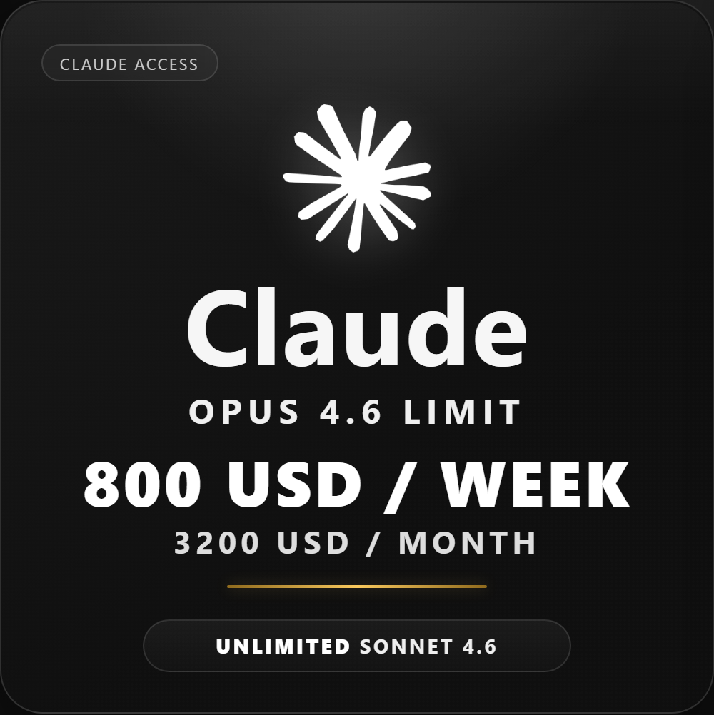 Тариф с лимитом Claude Opus 4.6: 800 USD / неделя, 3200 USD / месяц