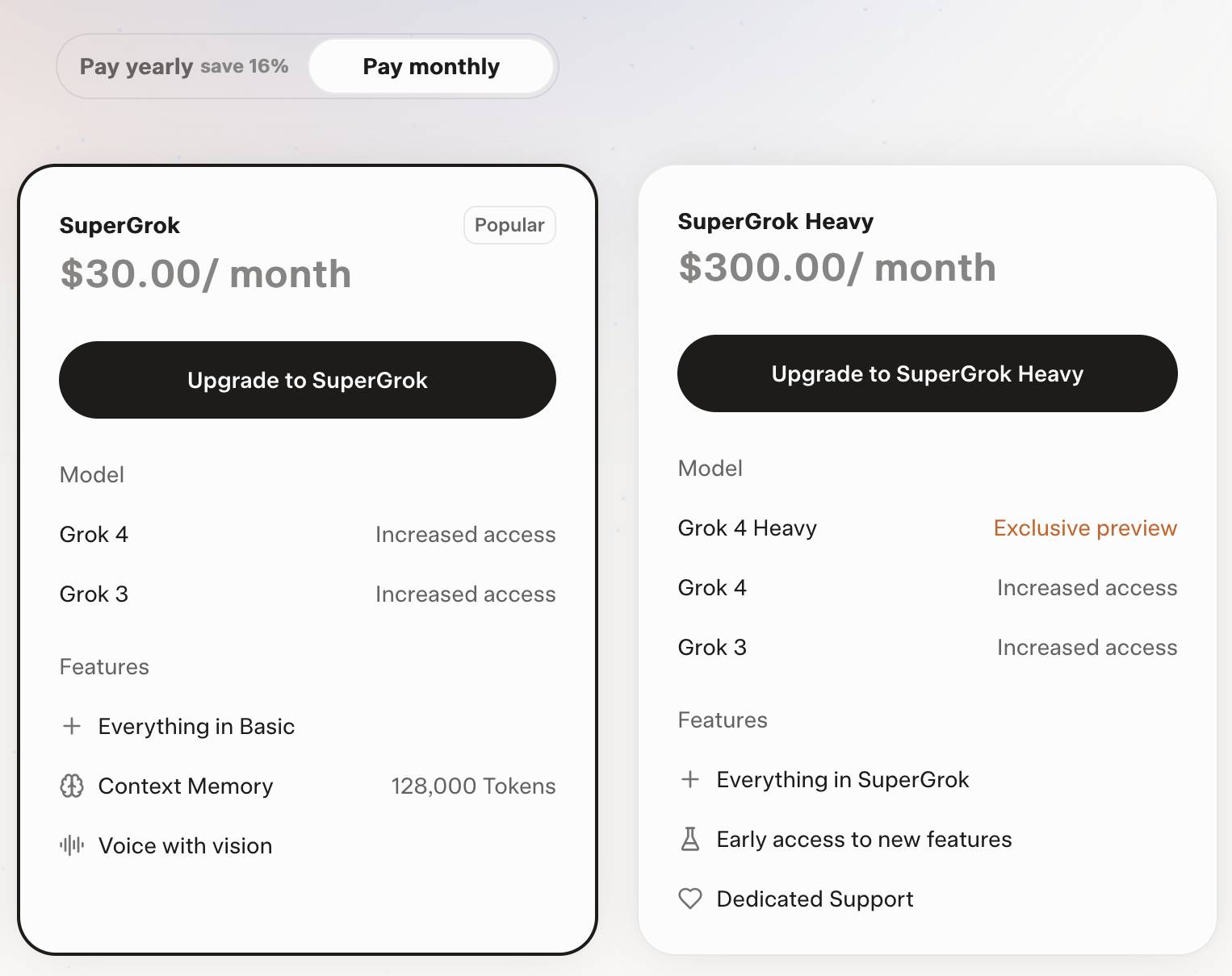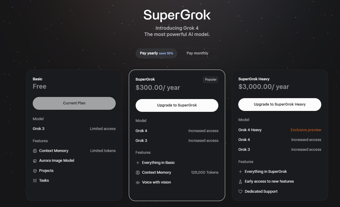 • SuperGrok / SuperGrok Heavy – 1 месяц / 1 год