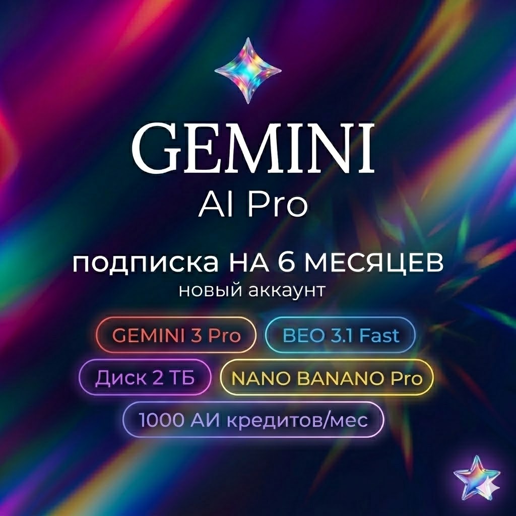 Хватит переключаться между десятью сервисами! Получите доступ к самой мощной экосистеме ИИ в мире. Видео, музыка, код, дизайн и огромный облачный диск — всё это теперь в ваших руках на 6 месяцев без пауз и блокировок.