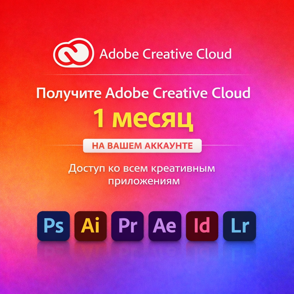 • Доступ: Полный пакет Adobe Creative Cloud (30+ приложений)