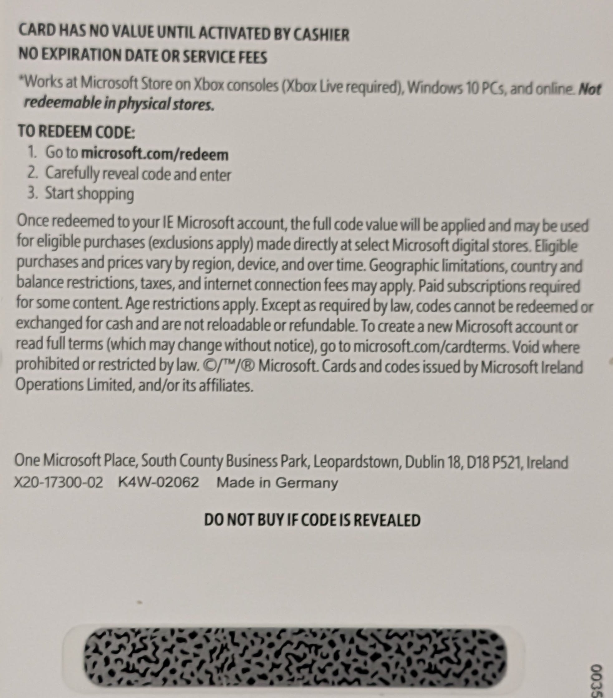 Совместим с интернет-магазином Microsoft Store, Windows 11 Home/Pro и Windows 10 с последними обновлениями, Xbox Series X, Xbox One и Xbox 360 (требуется Xbox Live). Не работает в физических магазинах Microsoft Store. После погашения в вашей учетной записи Microsoft в Ирландии будет применена полная стоимость кода, и его можно будет использовать для соответствующих покупок (исключения применимы), совершаемых непосредственно в выбранных цифровых магазинах Microsoft. Соответствующие покупки и цены варьируются в зависимости от региона, устройства и времени. Могут применяться географические ограничения, ограничения по стране и балансу, налоги и сборы за подключение к Интернету. Для доступа к некоторым материалам требуется платная подписка. Применяются возрастные ограничения. За исключением случаев, предусмотренных законом, кредит не может быть погашен или обменен на наличные деньги и не подлежит возврату. Чтобы ознакомиться с полными условиями (которые могут изменяться без предварительного уведомления), перейдите на сайт microsoft.com/cardterms. Недействительно там, где это запрещено или ограничено законом. Карты и коды выпущены и ©/™/® Microsoft Corp, корпорацией штата Вашингтон, и/или ее аффилированными компаниями.