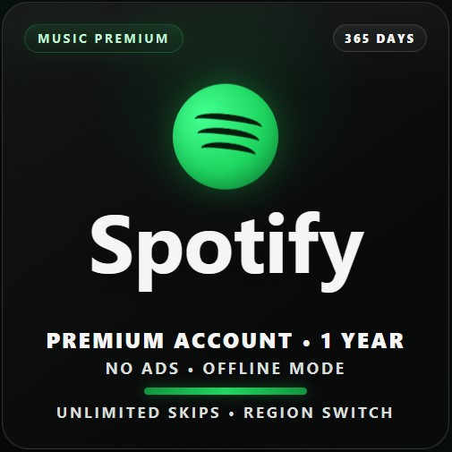 Spotify Premium на вашем личном аккаунте на 365 дней: миллионы треков и подкастов без рекламы, с офлайн-режимом и безлимитными пропусками.