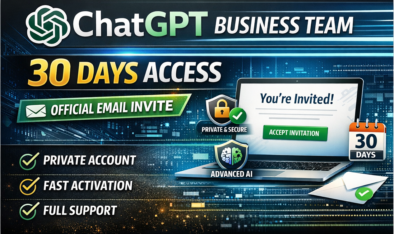 Получите 30 дней доступа к ChatGPT Business Team, привязанного к вашему email, через официальное приглашение в рабочее пространство.
