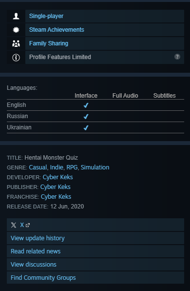🟡Ссылка на игру в steam - https://store.steampowered.com/app/1311190/Hentai_Monster_Quiz/