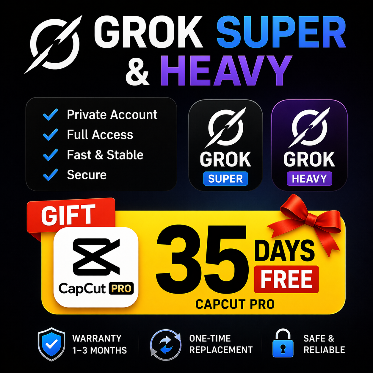 Откройте полный потенциал Grok Heavy и Super Grok 4.1 с приватным и безопасным доступом — готово к использованию всего за несколько минут.