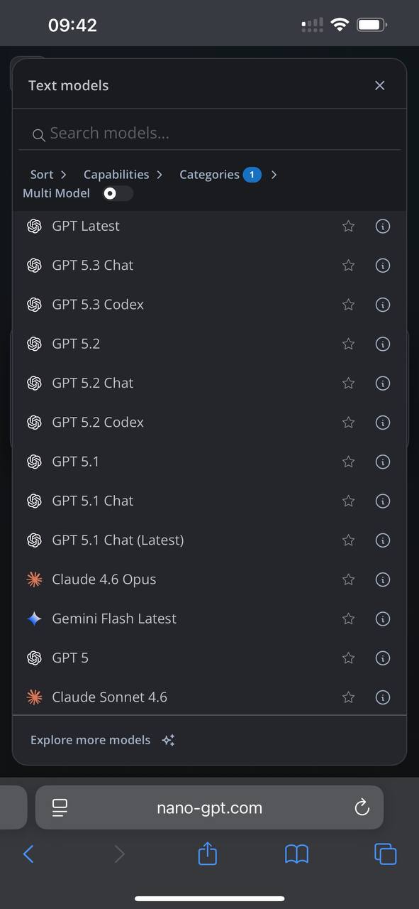 NanoGPT — это веб-сервис (nano-gpt.com), который объединяет доступ к десяткам популярных нейросетей в одном интерфейсе. Его главная особенность — модель оплаты «по факту» (pay-as-you-go)