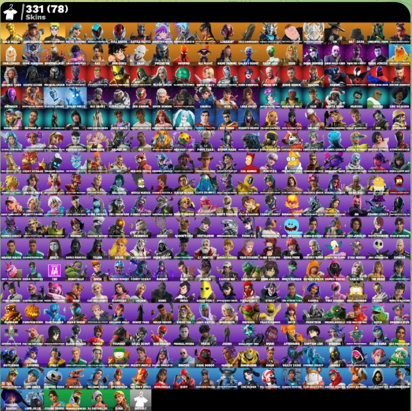💎 Поднимите своё приключение в Fortnite на новый уровень с премиум-аккаунтом, включающим 331 уникальный скин. Вы получите данные для входа в игру и на электронную почту.