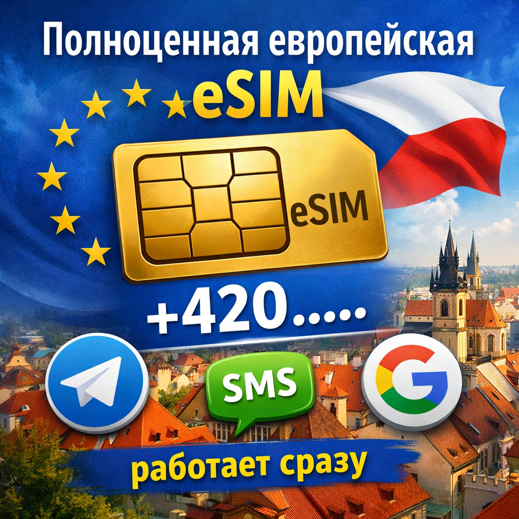 Полноценная европейская eSIM ( Чехия, +420)
