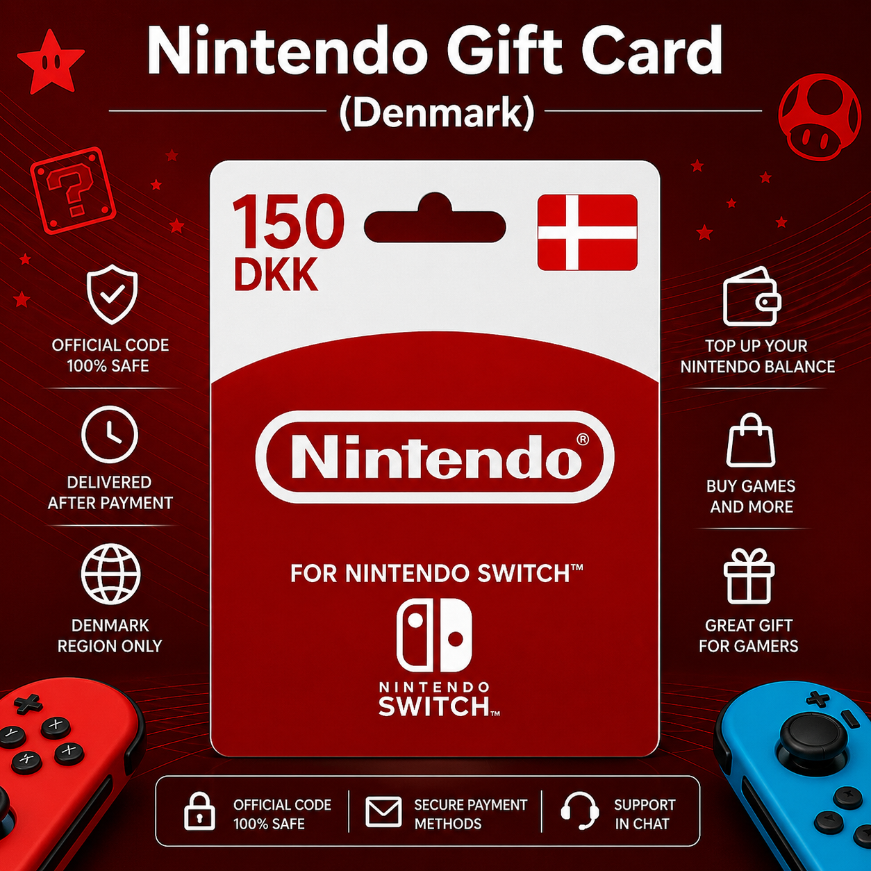 Подарочную карту Nintendo (Дания) номиналом от 150 до 1000 DKK — выберите нужную сумму при покупке